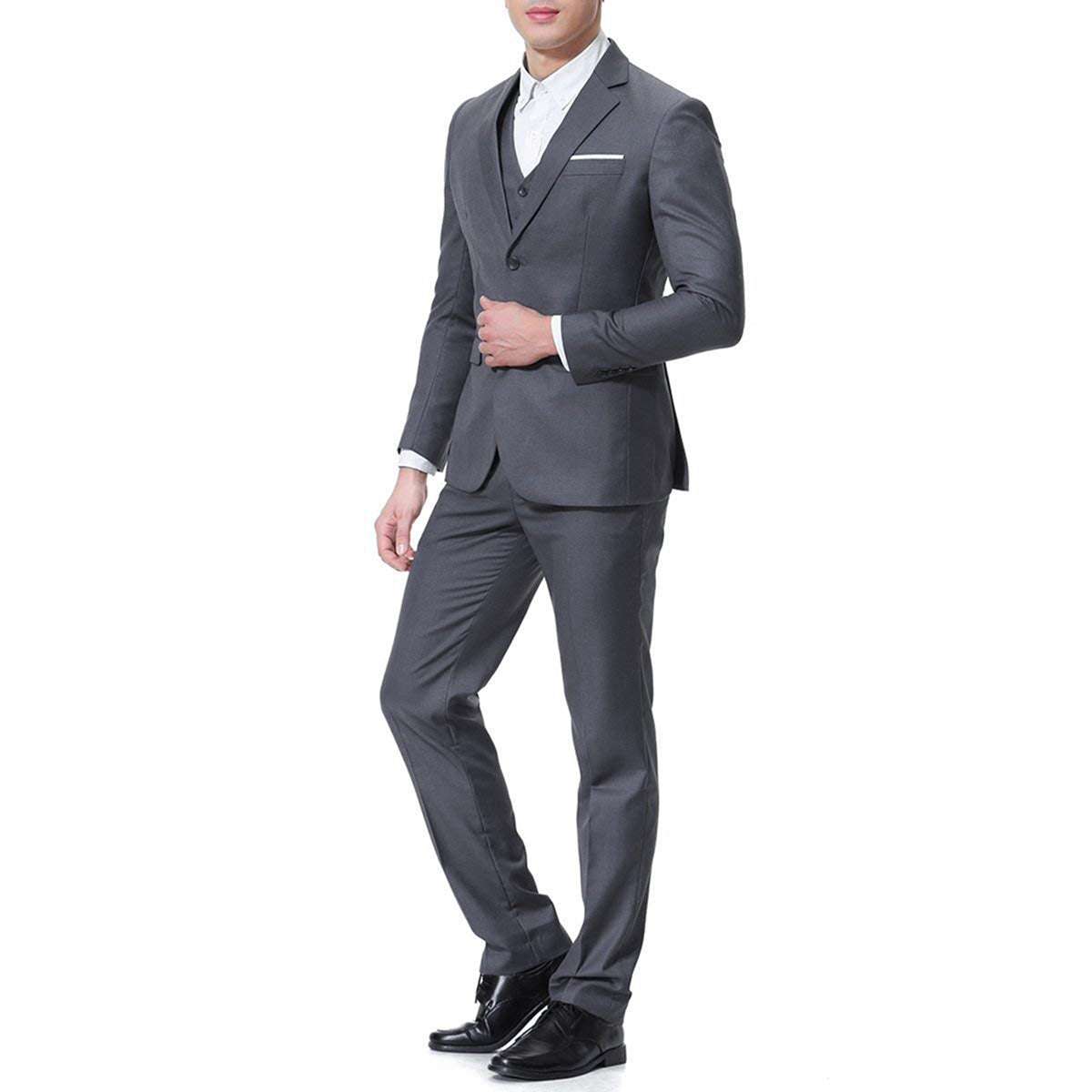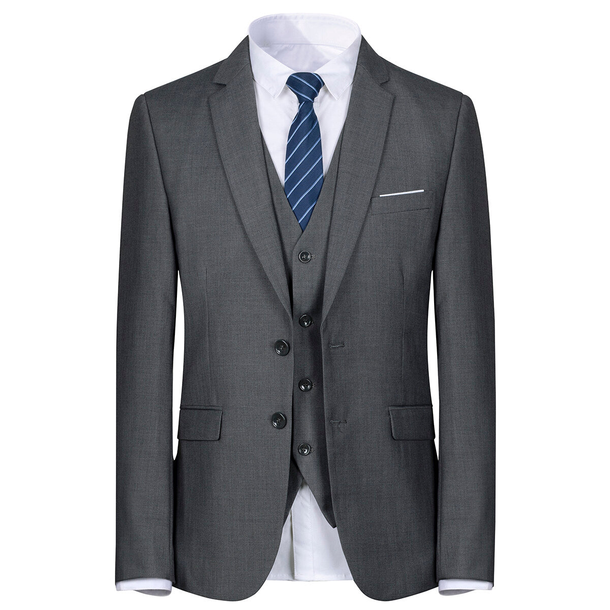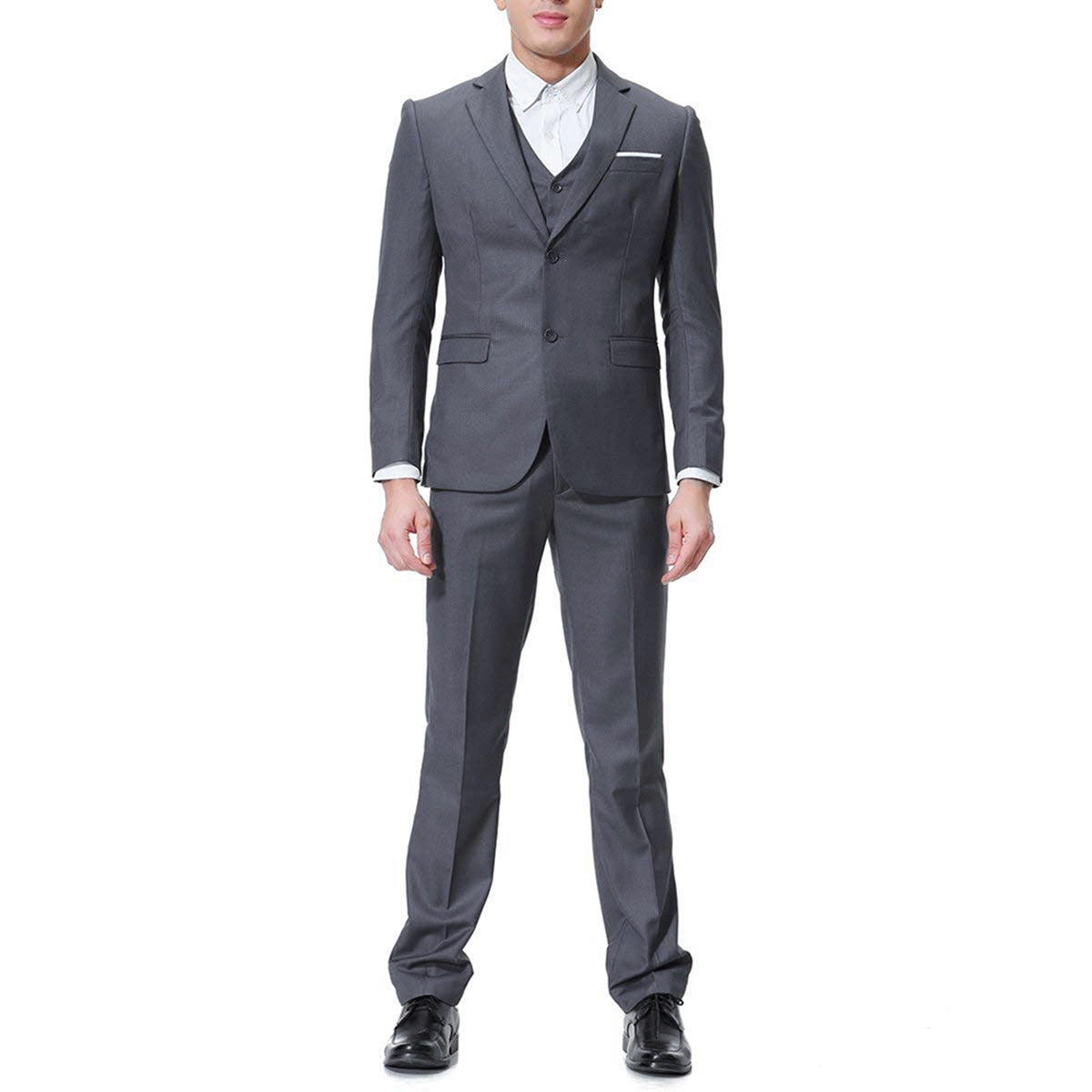 Discover the elegance of our 3-Piece Notched Lapel Suit in DimGrey. Crafted with a superior blend of 70% polyester and 30% viscose, this suit offers comfort, breathability, and durability. The inner lining, made of 94% polyester and 4% viscose, enhances breathability and sweat absorption. Dry-clean is recommended, and hand washing is available with cold water.