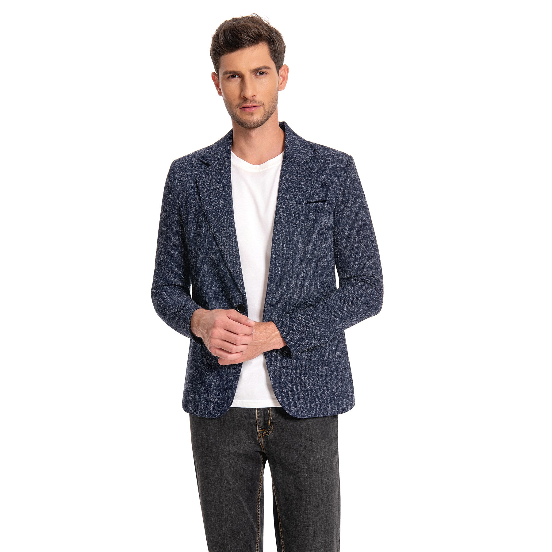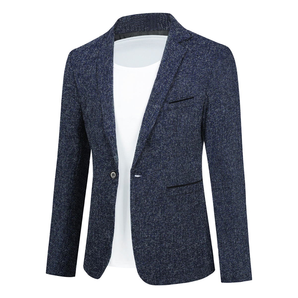 Men's Single-Breasted Notched Lapel Suit Jacket Blue