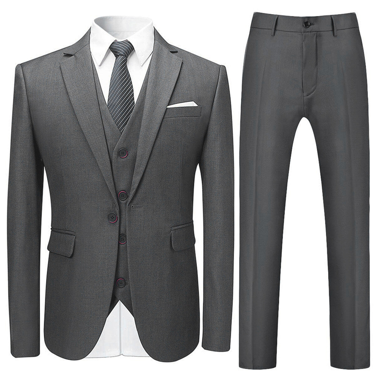 Eleganter, formeller Hochzeitsanzug, 3-teilig, Slim Fit, Grau