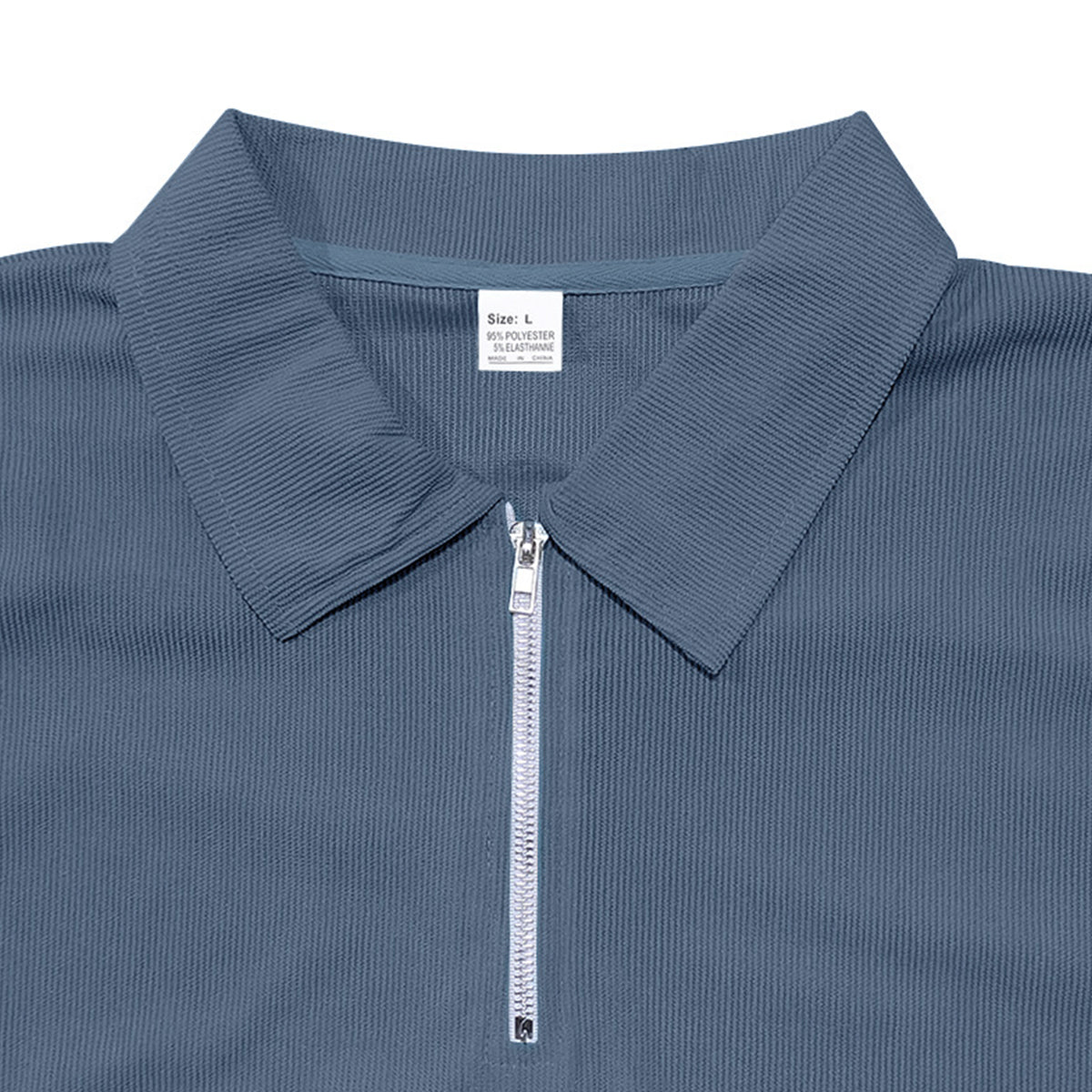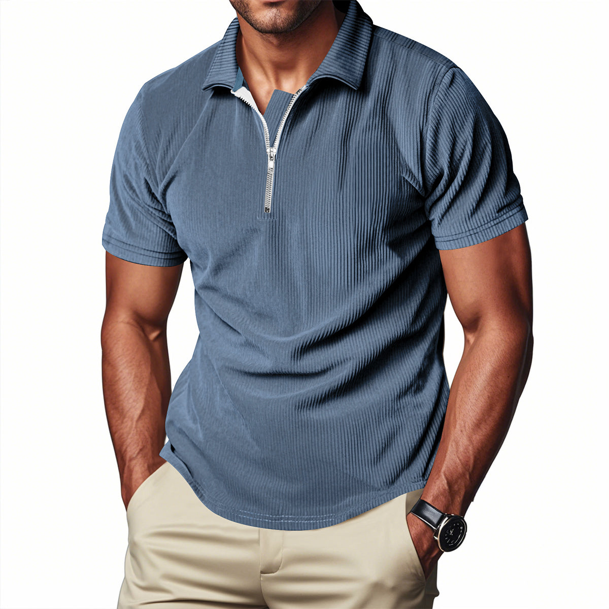Herren Polo Cord Kurzarm Sommer T-Shirt Denim Blau