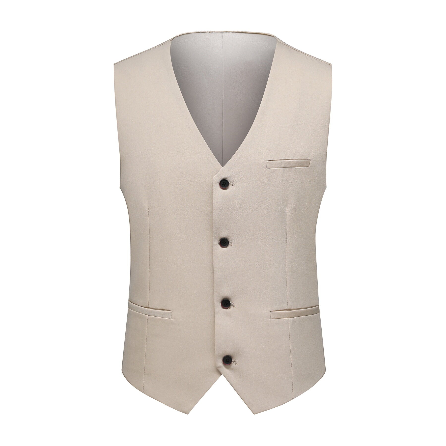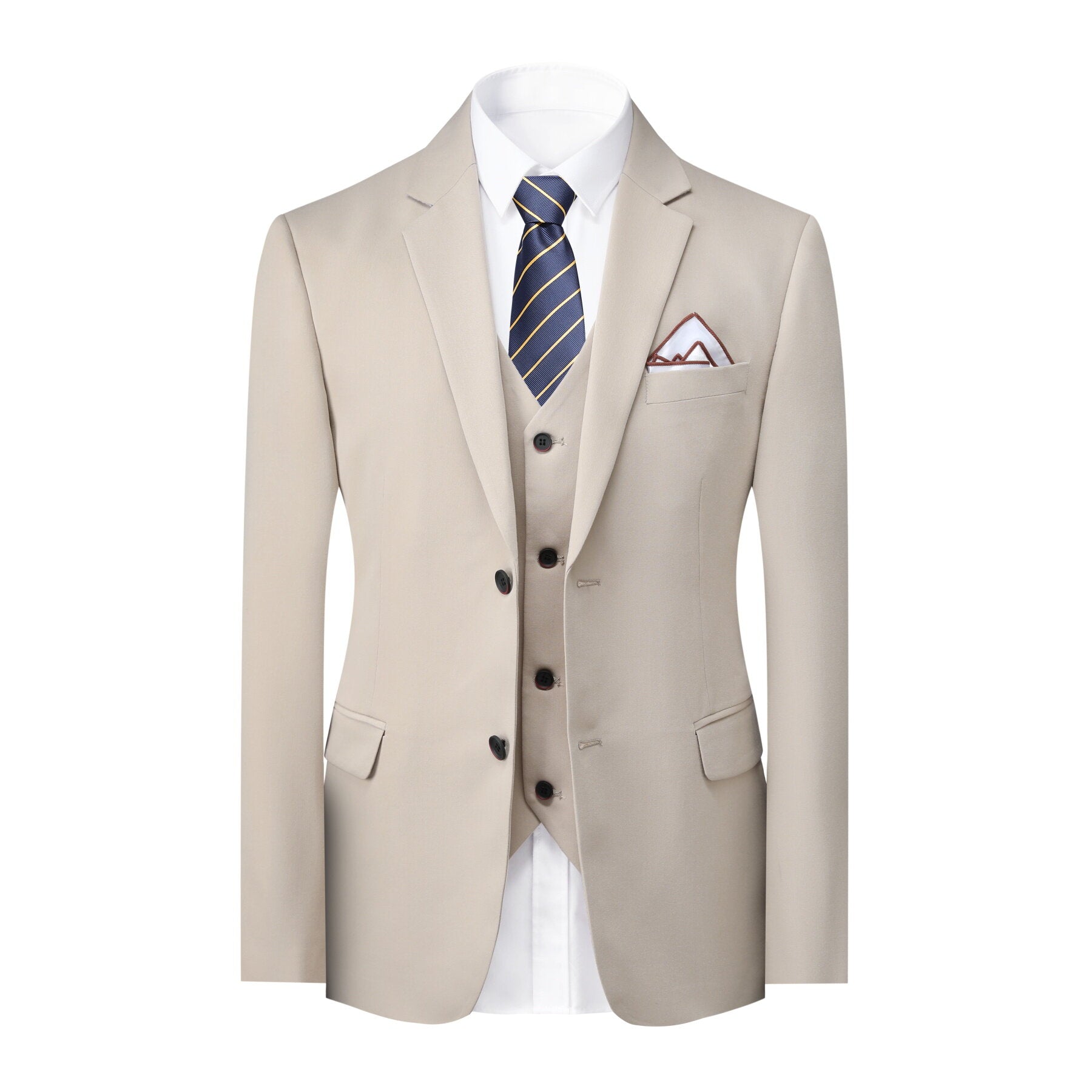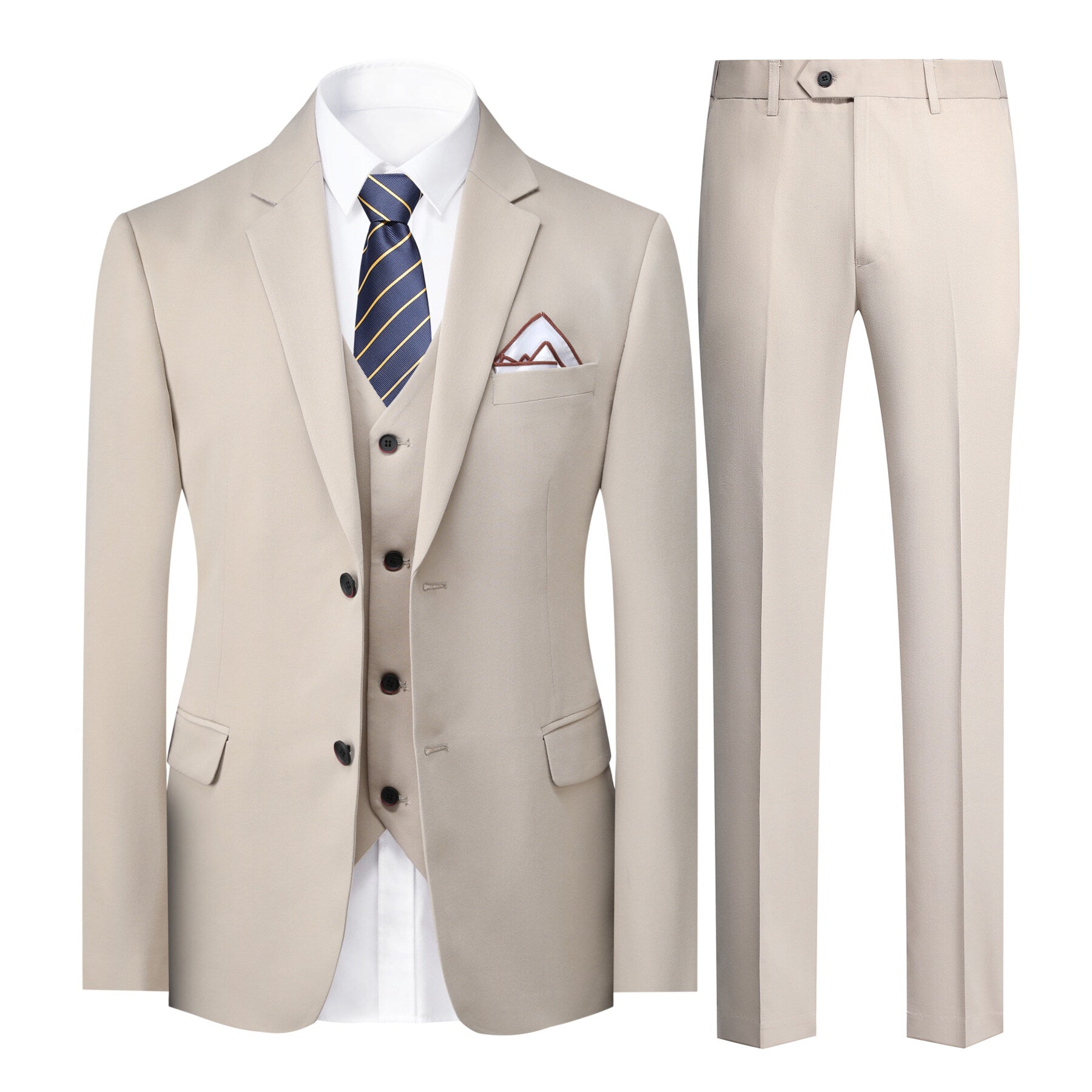 3-Piece Men's Solid Color Two-Button Notch Lapel Suit Beige