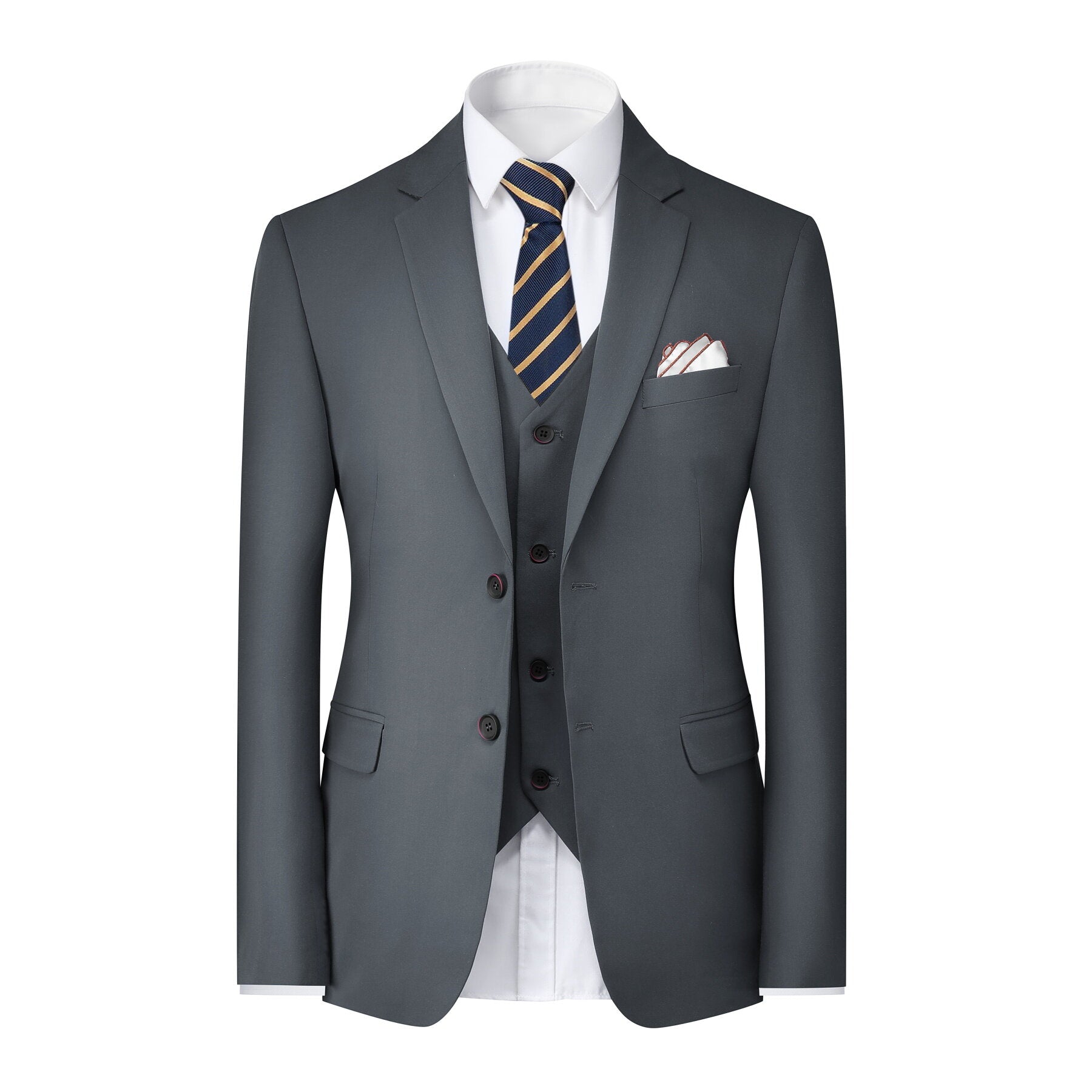 3-Piece Men's Solid Color Two-Button Notch Lapel Suit Dark Grey