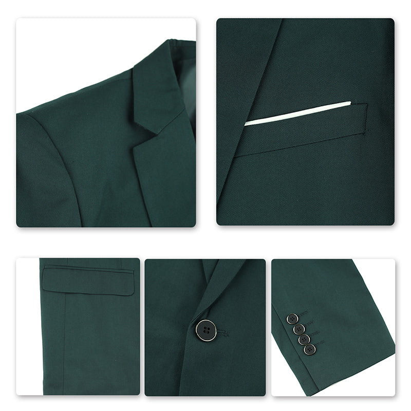 3-Piece Slim Fit One Button Fashion Oak Green Suit
