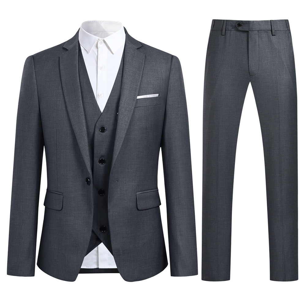 3-Piece Slim Fit One Button Fashion DimGrey Suit