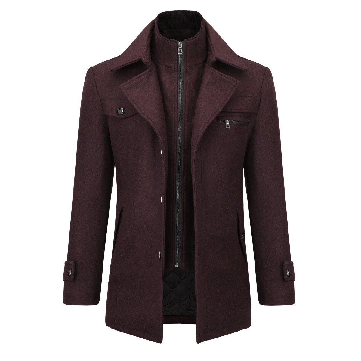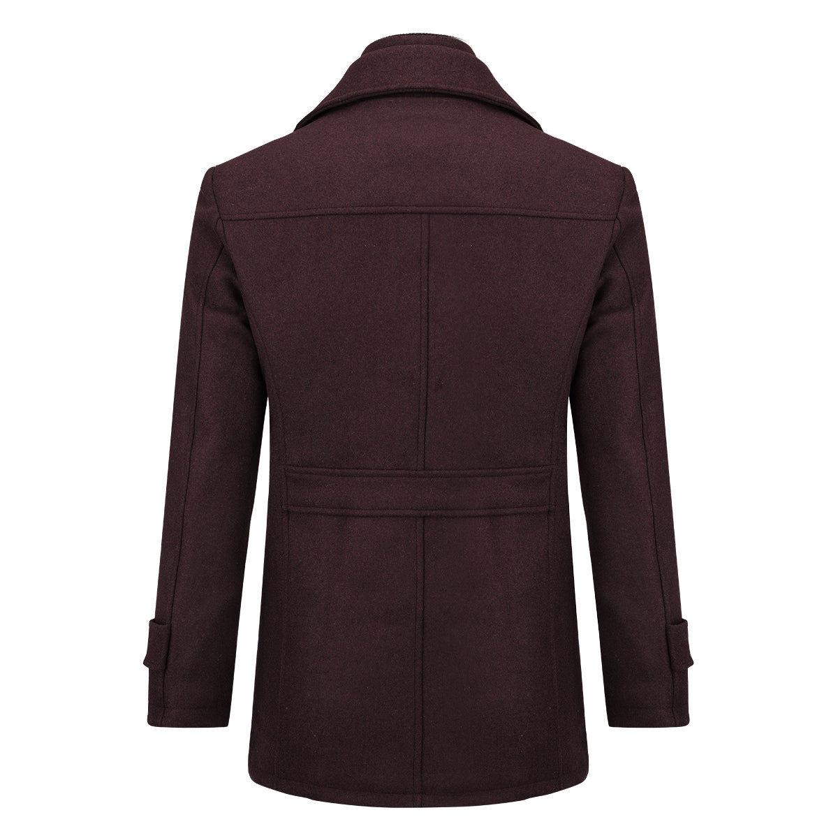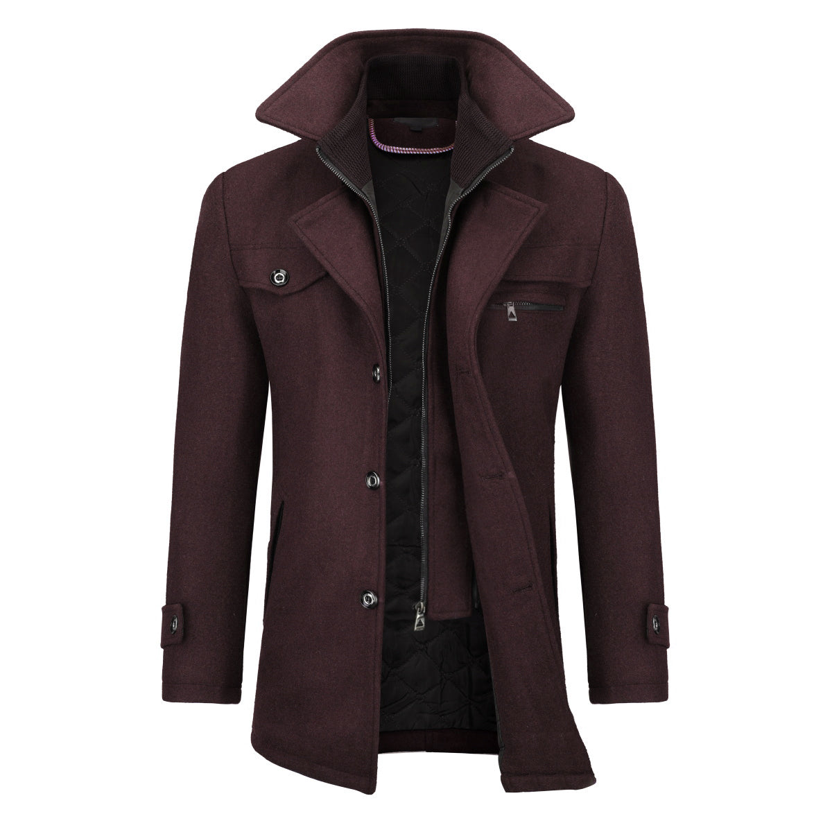 Men’s Solid Color Thick Double-Layer Collar Casual Overcoat Wine Red