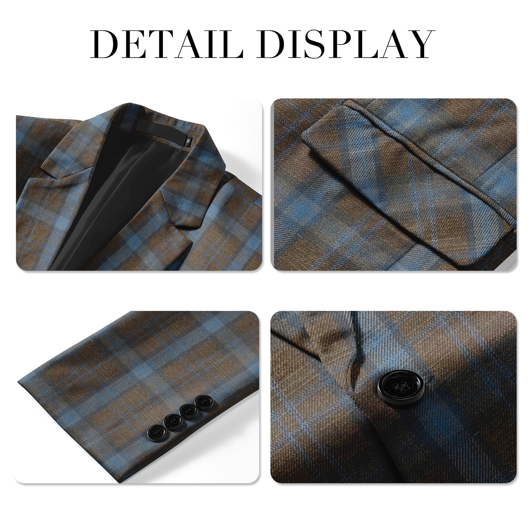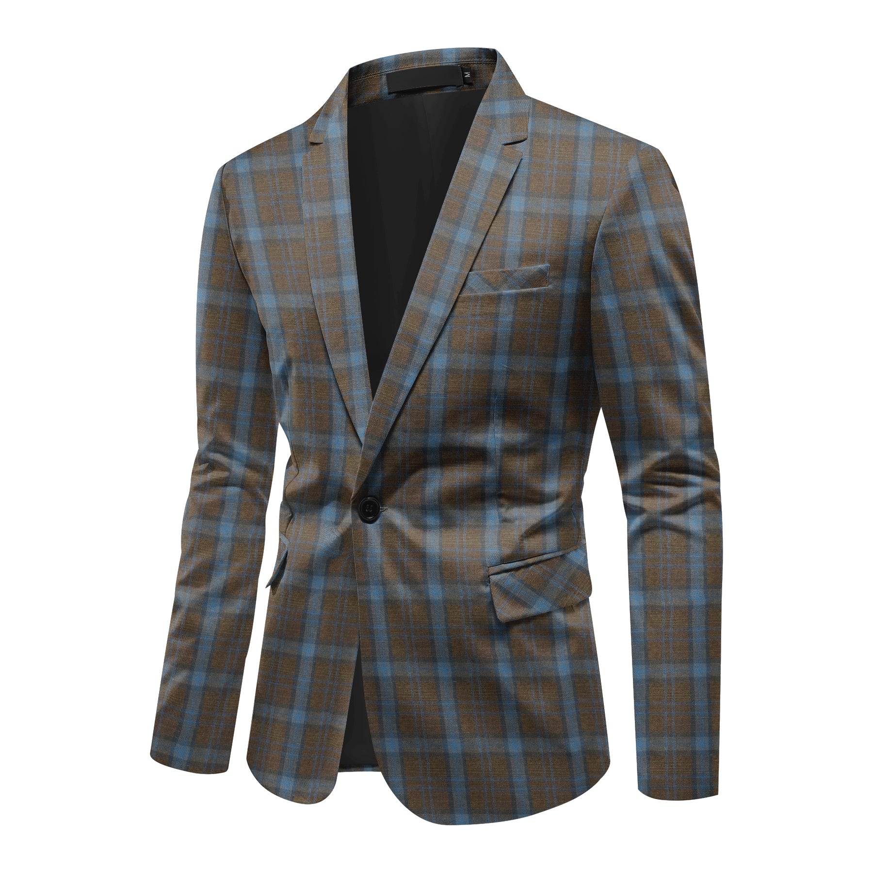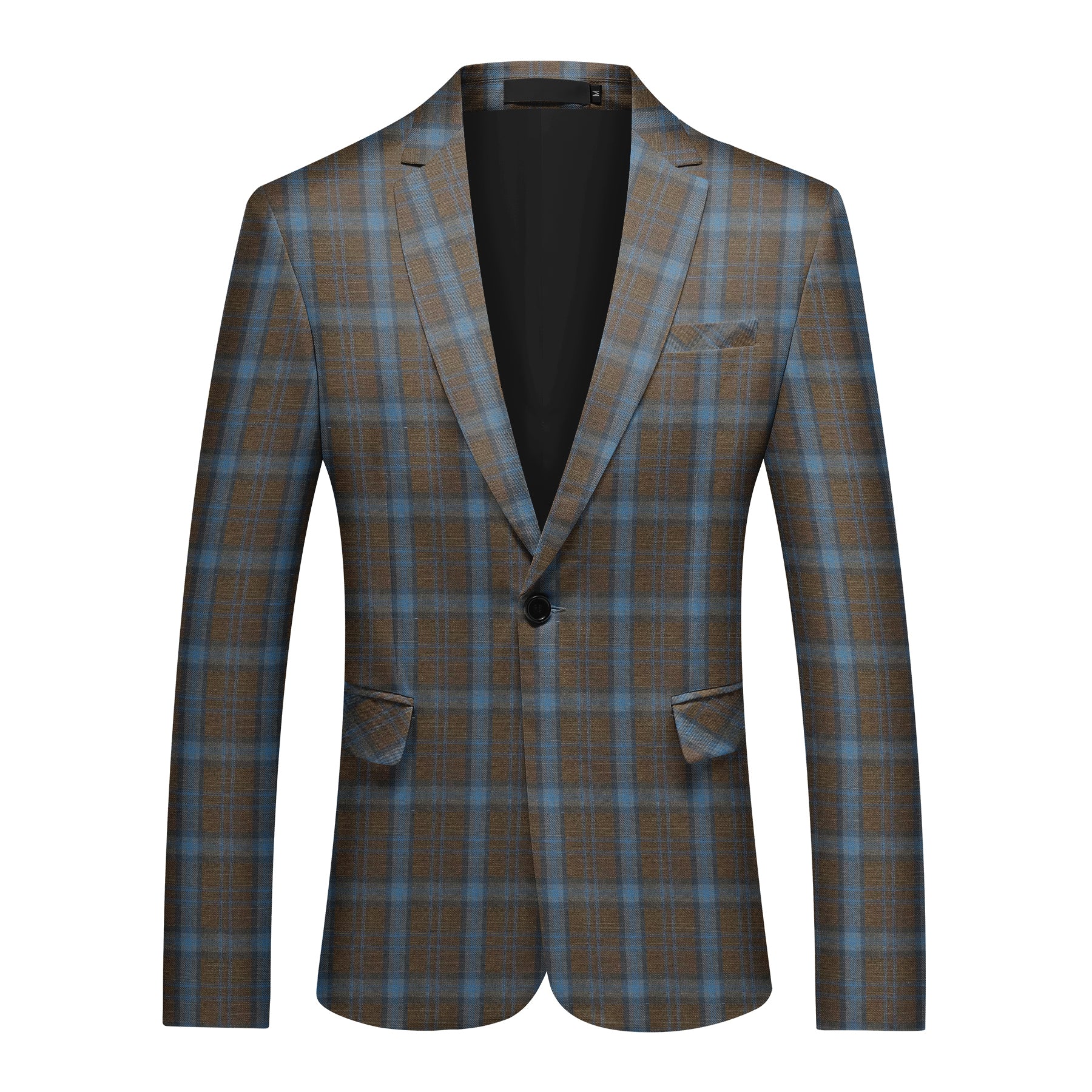 Men's Printed Plaid One-Button Blazer Coffee